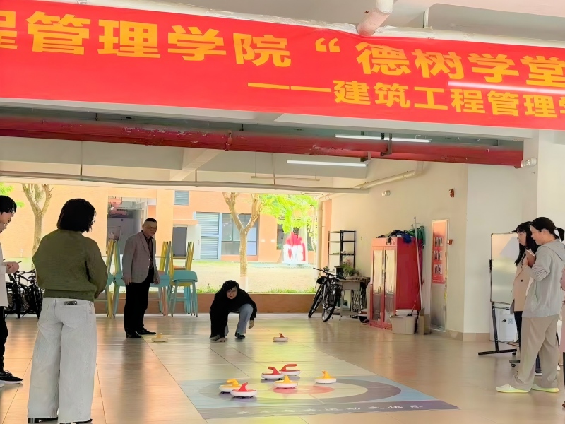 12月10日,建筑工程管理学院在“德树”学堂学生社区举办领导干部结对宿舍陆地冰壶友谊赛活动。